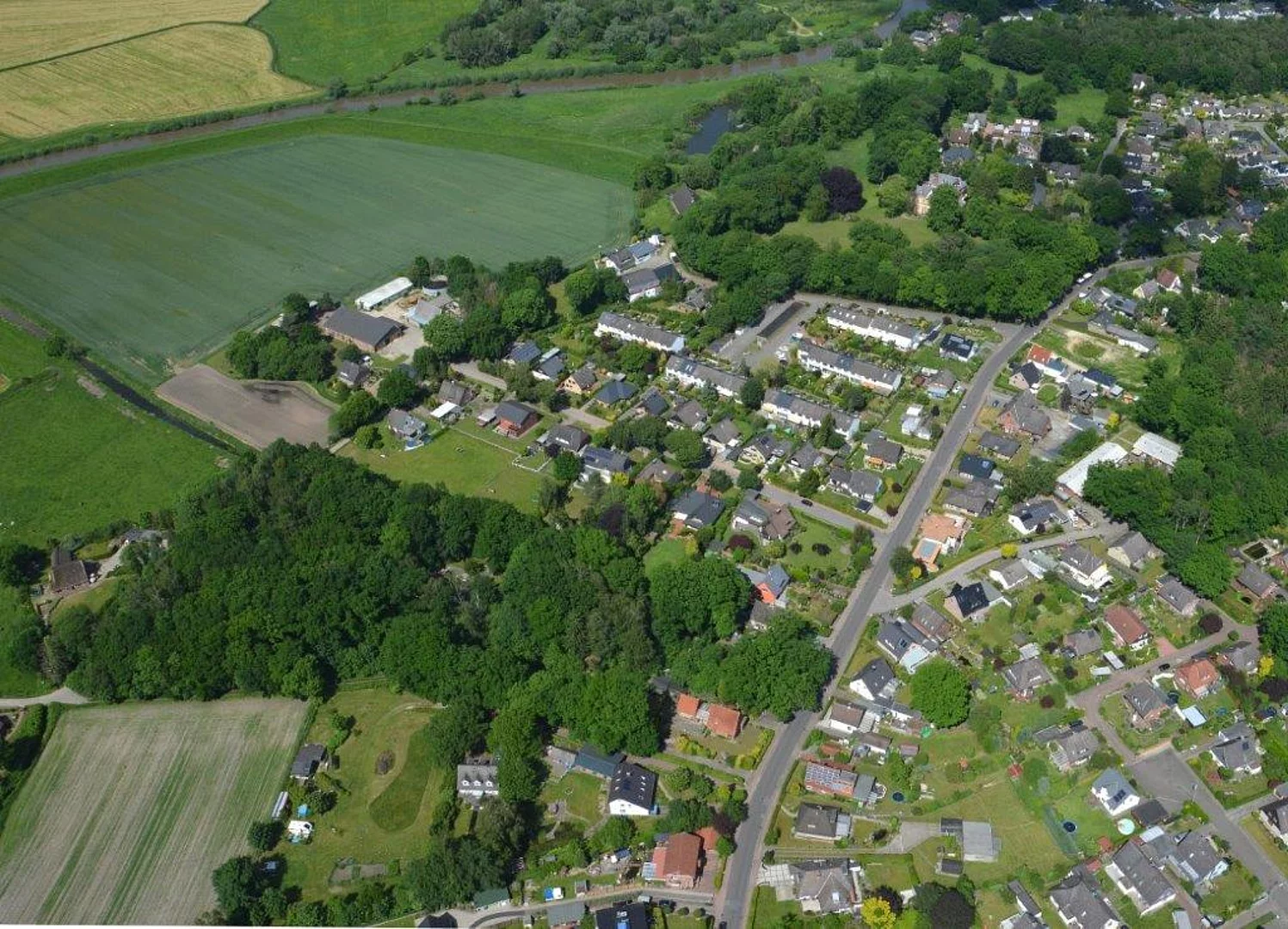 "Klar sieht, wer von ferne sieht", so ein geflügeltes Wort. Erst der Blick von oben erschließt dem aufmerksamen Beobachter die Schönheiten der Region: stattliche Gebäude in harmonischer Kombination mit Gewerbeflächen, Erholung bietende Wälder und Gewässer, landwirtschaftlich genutzte Äcker und Wiesen, zahlreichen Einrichtungen, die von einer gesunden Infrastruktur unseres Dorfes zeugen.